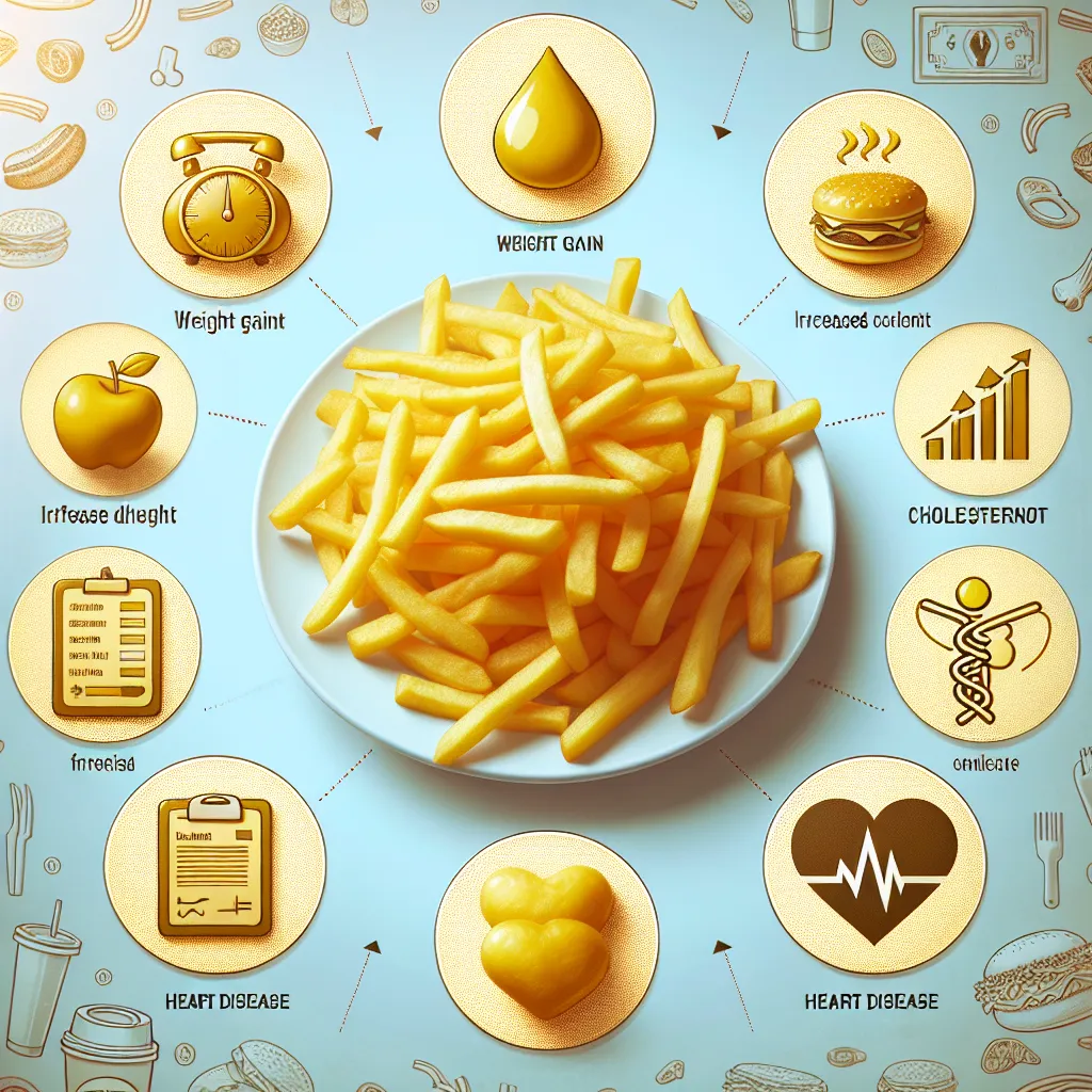 Высокое содержание насыщенных жиров и трансжиров в картошке фри может привести к повышению уровня холестерина в крови, что увеличивает риск сердечно-сосудистых заболеваний. Исследования показывают, что потребление трансжиров связано с повышенным риском инфаркта и инсульта.
